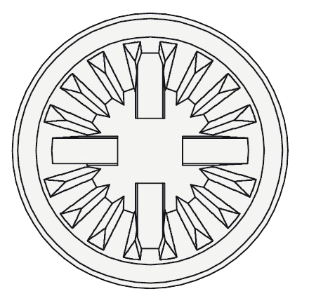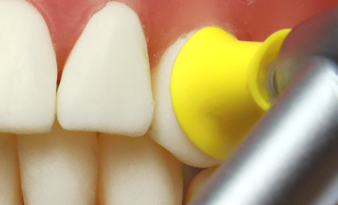 Dieser Kelch ist mit 4 Stegen und Innenrippen ausgestattet und liefert die optimale Menge an Prophylaxepaste, um die Fleckenentfernung zu unterstützen. Der Kelch hat auch die Fähigkeit, sich nach außen zu erweitern und so bis in den Zahnfleischbereich und in die interproximalen Bereiche vorzudringen.