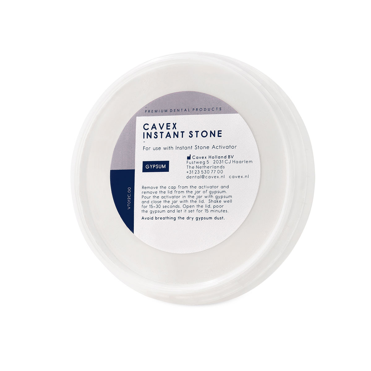 Viele Zahnarztpraxen haben keinen separaten Bereich zum Ausgießen von Abdrücken. Außerdem haben nur wenige einen (Vakuum-) Gipsanmischgerät. Cavex Instant Stone ist ein Verbundgips und in nur 15 Minuten kann ein perfektes Modell für (Bleaching-) Schienen und Mundschutz gegossen werden. Behandlungen, die normalerweise mehrere Zahnarztbesuche erfordern, können jetzt in einer Sitzung durchgeführt werden.