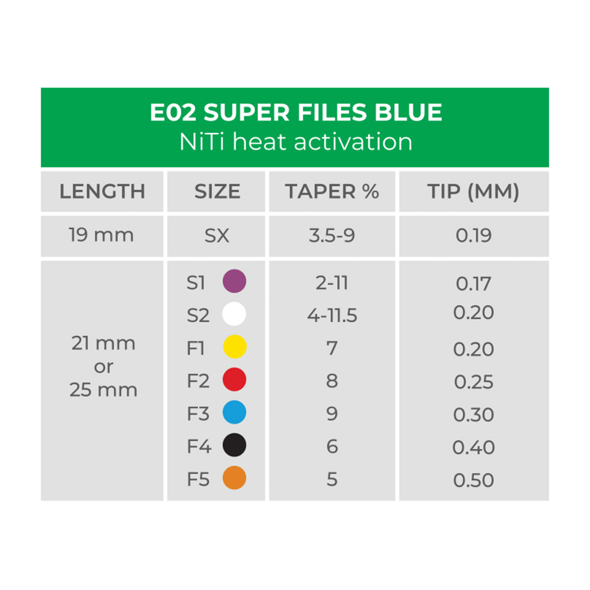 Eigenschaften "E02 Super Feilen Blau NiTi hitzeaktiviert | 6 Stück"