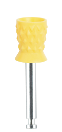 Noppen auf der Außenfläche optimieren das interproximale Polieren sowie die Entfernung von Flecken und Biofilmen und erfordern somit weniger Druck und verringern die Ermüdung des Benutzers. Turbinenschaufeln halten die Paste im Kelch und reduzieren so Spritzer, während der Kelch sich dennoch aufweiten kann.