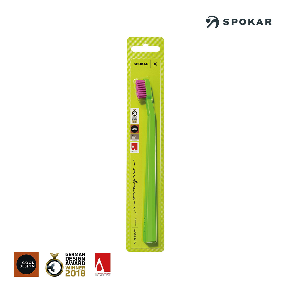 Das Design der SPOKAR X SUPERSOFT- Zahnbürste stammt vom führenden tschechischen Designer MgA. Petr Novague , der für seinen innovativen Ansatz zahlreiche internationale Auszeichnungen erhalten hat.