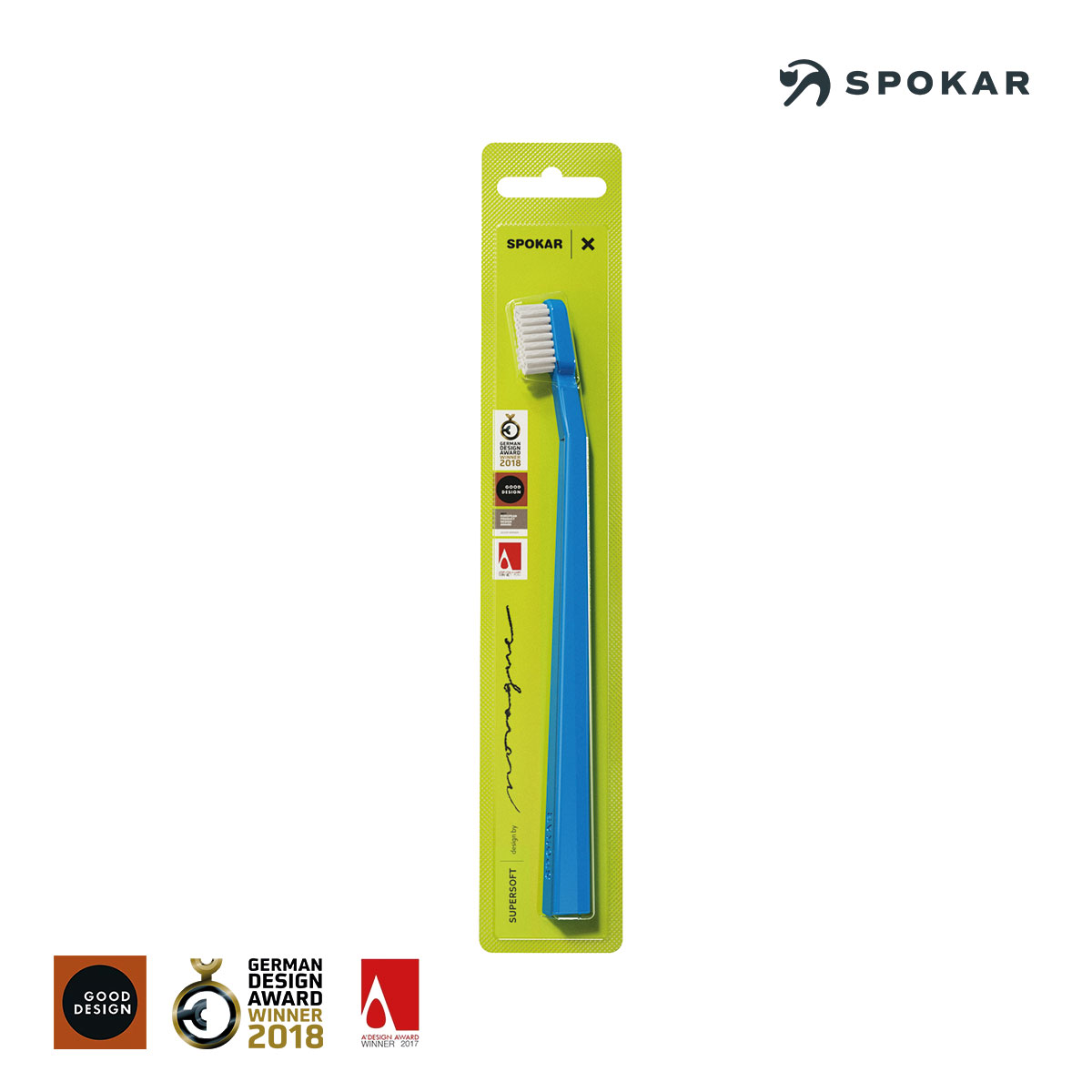 Das Design der SPOKAR X SUPERSOFT- Zahnbürste stammt vom führenden tschechischen Designer MgA. Petr Novague , der für seinen innovativen Ansatz zahlreiche internationale Auszeichnungen erhalten hat.