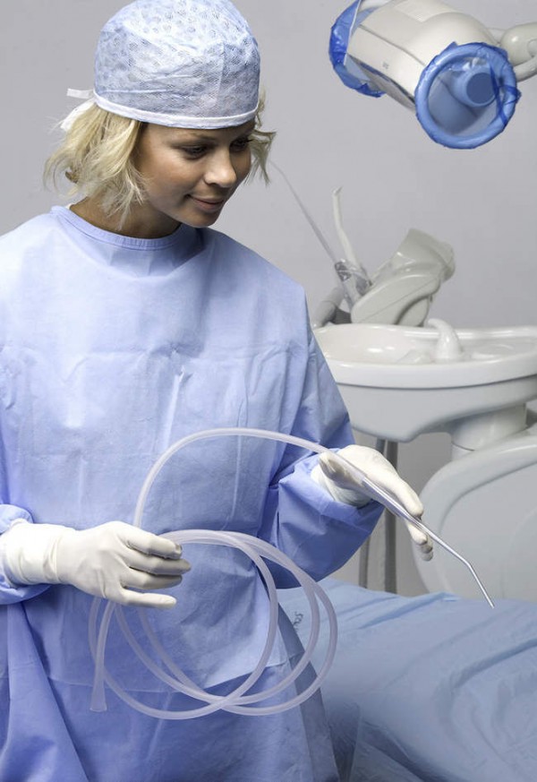 Steriles Komplett-Set für komplexere Eingriffe wie bedeutende Rehabilitationen, Osteodistraktionen oder kieferchirurgische Eingriffe. In diesem Set sind alle Produkte enthalten, die zum Ausstatten eines OP-Saals für anspruchsvolle Eingriffe benötigt werden verklebbare Abdecktücher, atmungsaktives Patienten OP Abdecktuch aus Softesse® mit verklebbarem U-Ausschnitt. Schlauchüberzüge für Handstücke, Klebefolien für Tastenfelder, Spezial-OP Abdecktuch aus medizinischem PVC hürhysiodispenser, Patientendesinfektionskit, Mayo-Überzug, 2 OP-Mäntel aus Softesse® mit 2 sterilen Handtüchern. Das Set ist in ein praktisches saugfähiges flüssigkeitsfestes Wickeltuch 160x190 cm eingewickelt und in einem Tyvek®-Beutel verpackt. Ein Set besteht aus: 2 OP-Mäntel Modell Expo (Größe L) mit chirurgischer Faltung 2 Handtücher in medizinischem Einschlagpapier aus Softesse® Hellblau 1 Perforierte Haube aus Vliesstoff Hellblau 2 Saugfähige/Flüssigkeitsfeste Abdecktücher mit verklebbarer Seite* 75x90 cm aus Vliesstoff + PE Hellblau 1 Mayo-Überzug 80x120 cm aus Vliesstoff + PVC Hellblau 1 OP Abdecktuch 40x50 cm mit verklebbarer Seite aus PVC Transparent 2 Schlauchüberzüge Omnisleeve 240x7 cm aus PVC Transparent 1 Chirurgischer Absauger ASP51/F aus PVC Transparent 2 Klebefolien 20x20 cm 2Cross20 aus PVC Hellblau1 Desinfektionsschwamm aus PVC mit Griff Blau 1 Schale 250 ml aus PVC Blau 1 Flüssigkeitsabweisendes OP Abdecktuch 67x75 cm mit verklebbarer Seite* aus Softesse® Hellblau 1 Flüssigkeitsabweisendes OP Abdecktuch 133x200 cm mit verklebbarem U Ausschnitt 6,5x50 cm und Kabeldurchgang aus Softesse Hellblau 5 Runde Gazetupfer Ø 3 aus Baumwolle Weiß 1 Beutel für kontaminiertem Abfall aus PVC Rot
